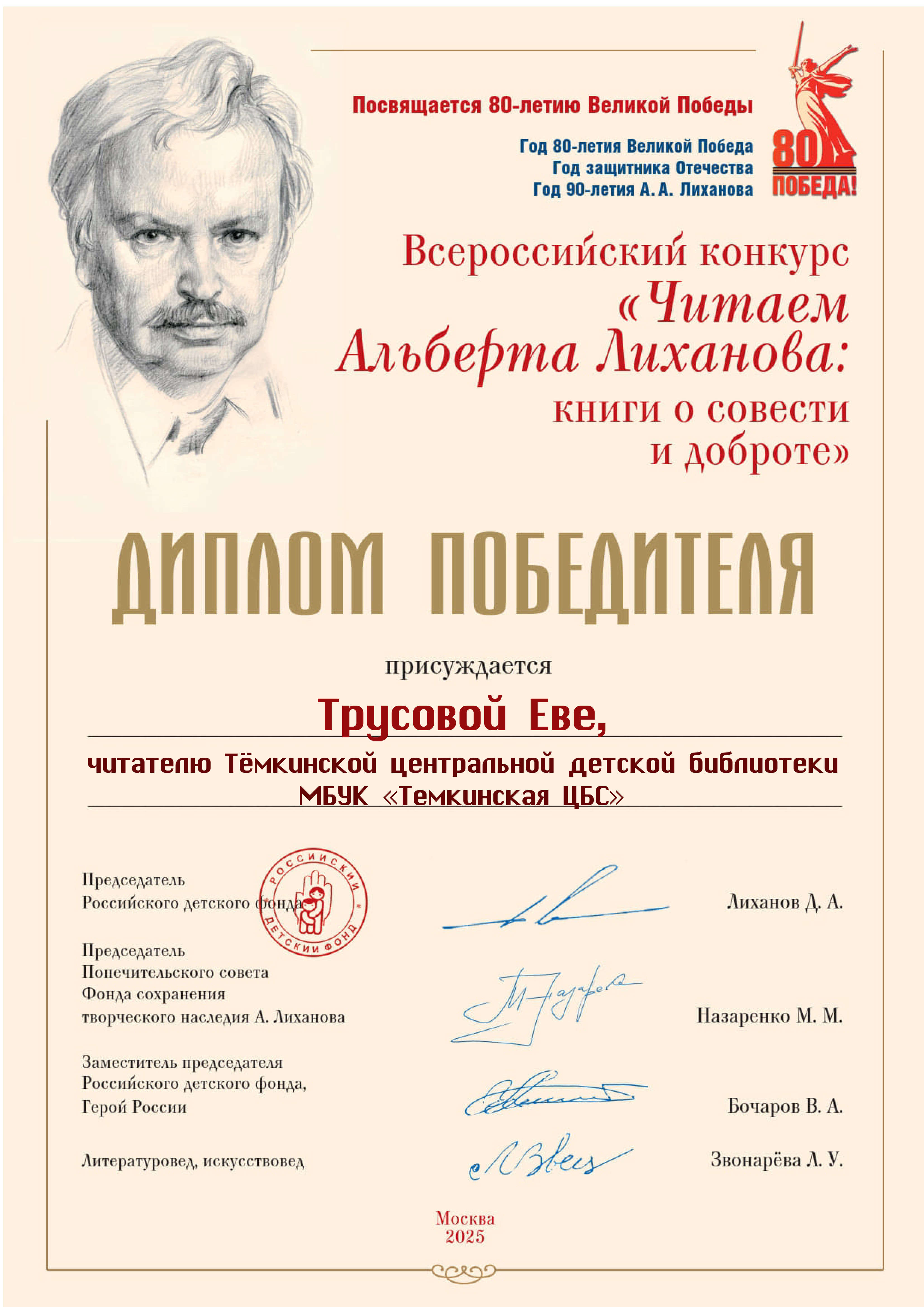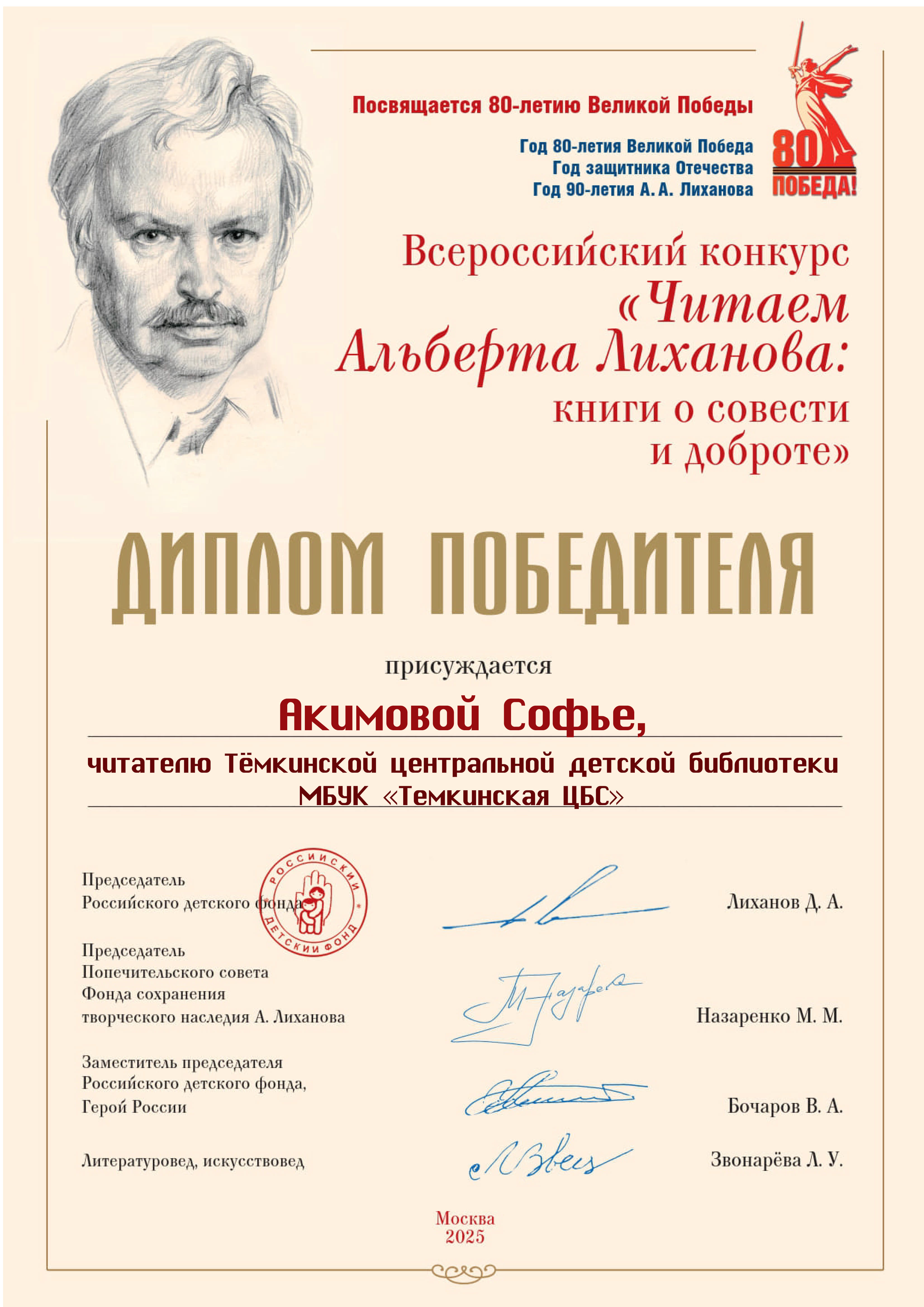 Общероссийский общественный благотворительный фонд «Российский детский фонд», Фонд сохранения творческого наследия Альберта Лиханова.